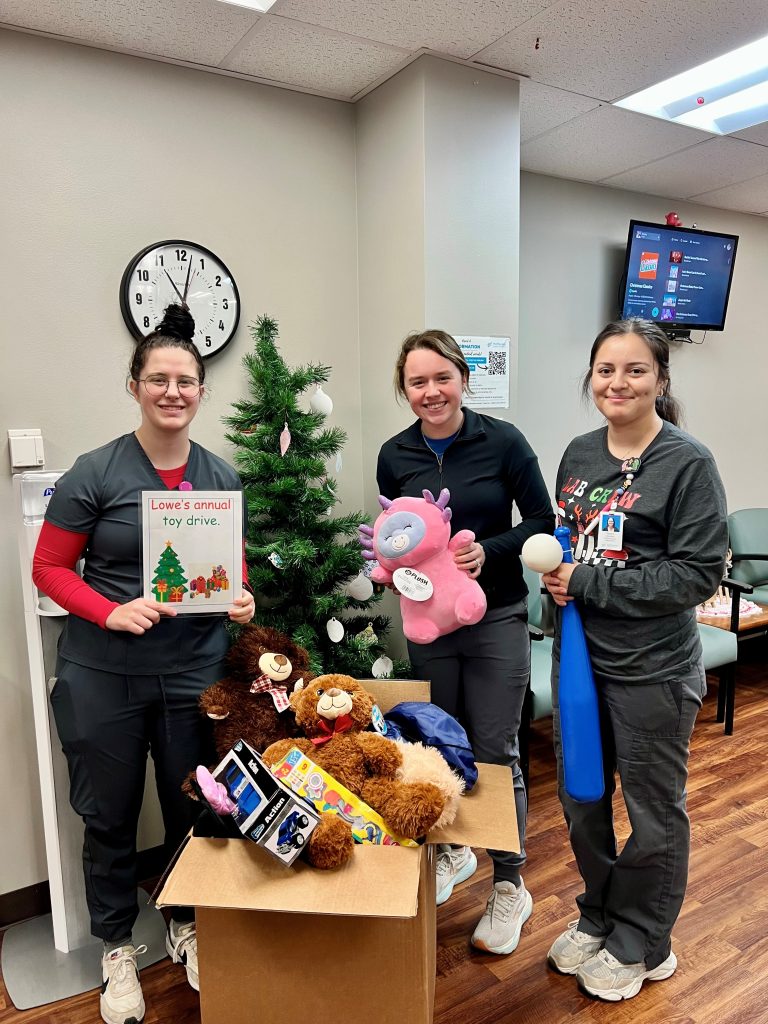 McPherson, KS – For the 17th year in a row, employees at Lowe’s in Hutchinson came together to spread holiday cheer through their annual employee toy drive. For the past several years, McPherson Center for Health has been honored to be the recipient of these generous donations, helping bring comfort and joy to children and families during hospital visits.